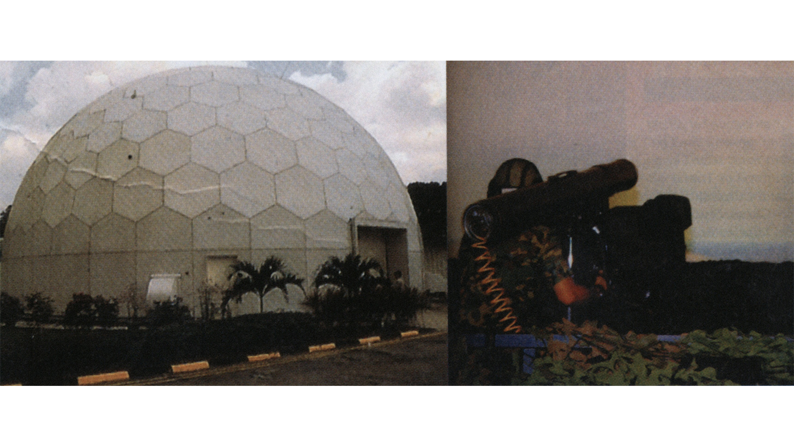 The dome of the Complete Engagement Simulator (left); an operator engaging a simulated target.